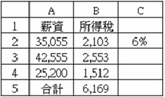 (1) | 8.在 Microsoft Excel 環境中,在下圖資料中,如果希望與「所得稅」有關的儲存格圖樣為灰-25%;則儲存格範圍 B2 至 E5 之「設定格式化的條件」功能中,「條件一」的公式應為何? (工作項目02:應用軟體使用101) |